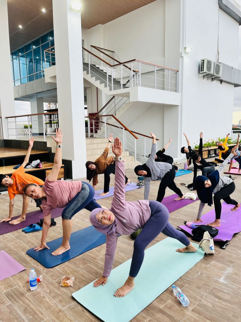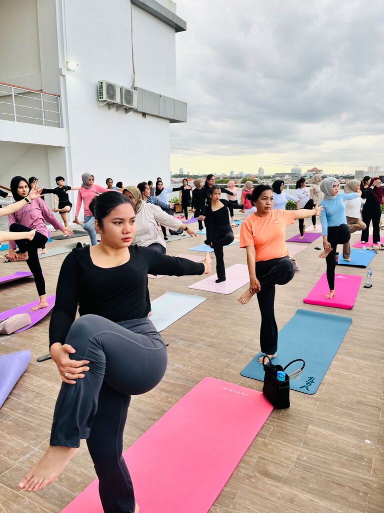 Kegiatan ini tidak hanya mengajak peserta untuk bergerak dan berolahraga, tetapi juga menjadi momen reflektif untuk menenangkan pikiran dan mengurangi stres setelah hari-hari yang padat. Dipandu oleh instruktur profesional, para peserta mengikuti sesi yoga di ruang terbuka yang teduh dan menenangkan.
